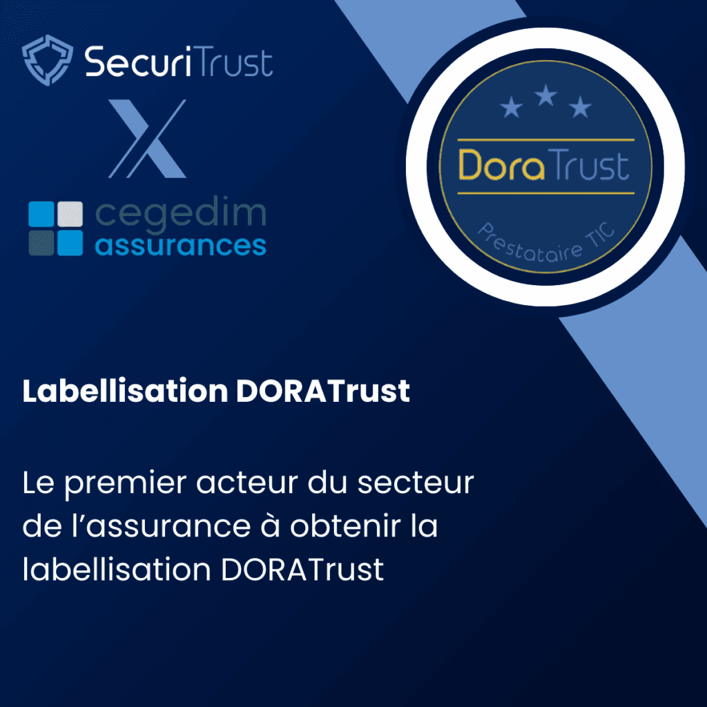 Communiqués de presse SecuriTrust délivre son premier label DORATrust à Cegedim Assurances Paris, le 10 septembre 2025 – Dans le cadre de l’entrée en vigueur du règlement européen DORA (Digital Operational Resilience Act), SecuriTrust, cabinet indépendant spécialisé en cybersécurité, annonce la labellisation DORATrust de Cegedim Assurances, acteur de référence des solutions logicielles et services pour l’assurance de personnes. Il s’agit de la première labellisation DORATrust attribuée dans le secteur de l’assurance de personnes, positionnant ainsi Cegedim Assurances comme précurseur dans la mise en conformité proactive avec le règlement DORA. Un label exigeant fondé sur plus de 350 contrôles DORATrust est un label de conformité élaboré par SecuriTrust, aligné sur les exigences du règlement DORA, entré en application en janvier 2025.Il repose sur un référentiel structurant de plus de 350 contrôles, couvrant l’ensemble des exigences en matière de cybersécurité, gestion des risques IT, résilience opérationnelle et continuité d’activité. En tant qu’acteur de confiance, SecuriTrust accompagne les entités financières et leurs prestataires critiques dans la compréhension et l’implémentation opérationnelle des nouveaux standards européens. Une démarche volontaire et collaborative Dès le début de l’année 2025, Cegedim Assurances a engagé une évaluation indépendante de sa conformité DORA auprès de SecuriTrust.Cette démarche, volontaire et structurée, illustre une volonté partagée de renforcer la sécurité, la fiabilité et la résilience des services proposés aux clients. « En tant qu’expert reconnu dans le domaine de la cybersécurité, nous sommes fiers d’accompagner Cegedim Assurances dans sa labellisation DORATrust. Cette première collaboration sur les sujets de résilience reflète une ambition partagée : garantir un haut niveau de sécurité et de fiabilité pour les clients», déclare Jad JOUMBLAT, Directeur de SecuriTrust. Une nouvelle ère pour la résilience numérique en Europe Le règlement DORA constitue une révolution réglementaire pour les entités financières et leurs prestataires TIC (Technologies de l’Information et de la Communication).Il impose un cadre harmonisé visant à renforcer la résilience numérique du secteur, dans un contexte d’exposition croissante aux cybermenaces et aux interruptions opérationnelles. Avec cette première labellisation, SecuriTrust affirme son rôle de tiers de confiance, capable d’évaluer objectivement la conformité des acteurs face à ces exigences renforcées. A propos SecuriTrust est un cabinet indépendant spécialisé en cybersécurité, continuité d’activité et conformité réglementaire. Fort d’une expertise reconnue dans l’audit, l’évaluation et la certification des dispositifs numériques critiques, SecuriTrust accompagne les organisations dans leur mise en conformité avec les standards internationaux (ISO, NIS2) et européens, notamment DORA. Besoin d’un accompagnement ? Que ce soit pour une mise en conformité, un audit ou un test d’intrusion, nos experts sont à votre écoute. Contactez-nous dès aujourd’hui pour un diagnostic. Demander mon diagnostic personnalisé
